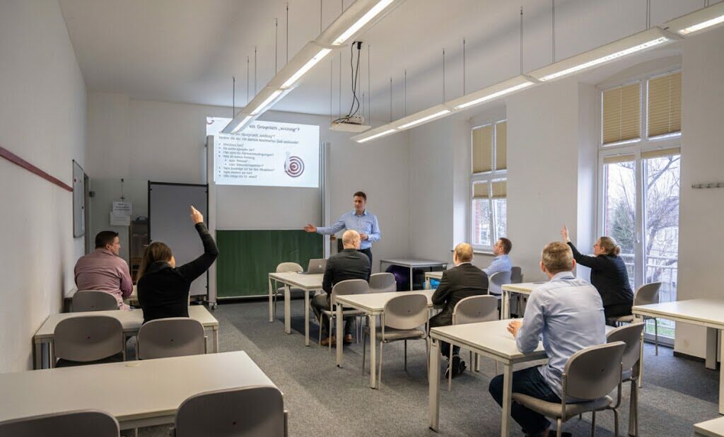 Unsere Dozenten kommen direkt in Ihr Unternehmen und schulen Ihre Mitarbeitenden bequem vor Ort. Das spart nicht nur Reisezeit und -kosten, sondern bietet auch den größtmöglichen Mehrwert bei minimalem Zeitaufwand.
